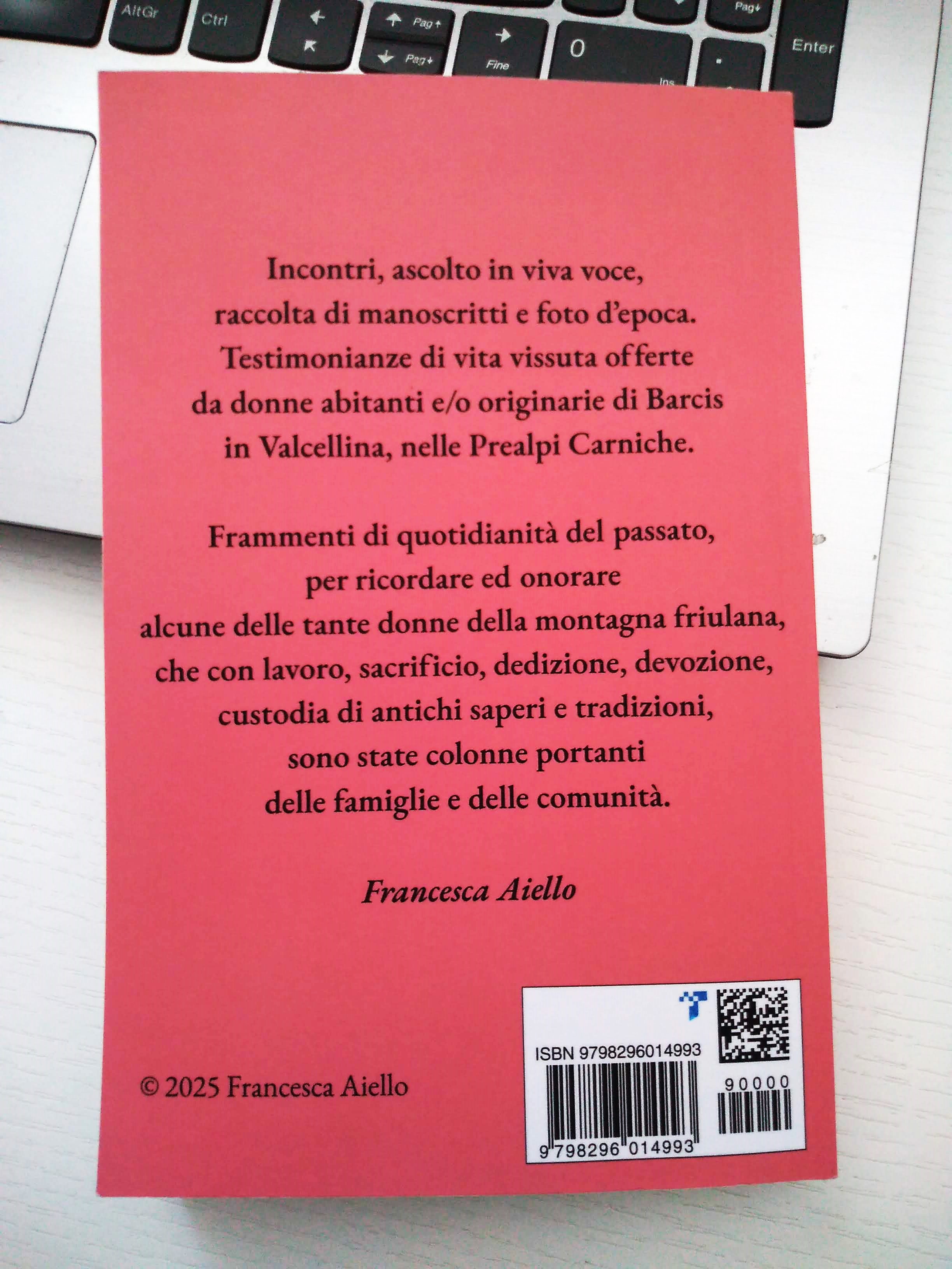 Spero che questo libro arrechi soddisfazione alle testimoni ed ai loro discendenti, e che raggiunga i giovani, vicini e/o lontani da Barcis in Valcellina, desiderosi di conoscere aspetti identitari di una piccola comunità di montagna spopolata, attraverso frammenti di storia e di memoria collettiva da non dimenticare e da trasmettere al futuro.